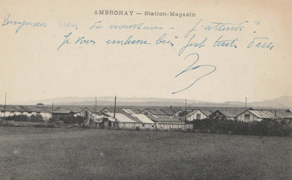 En 1939, l’armée ajouta un embranchement permettant de rejoindre la Station-Magasin du village, appelée localement ‘le Camp’. Construit durant la première guerre, ce camp logeait les soldats et alimentait les fronts Nord et Est en matériel et en pain. La nouvelle ligne passait à travers notre jardin, le coupant en deux. Un terre-plein dut donc être installé, afin de permettre à la famille de traverser les rails pour aller de l’autre côté du jardin, chercher de l’eau à la pompe, ou se rendre au village. Deux fois par jour, matin et soir, soldats et « gars de la boulange » passaient à bord du tramway, à travers le jardin, saluant la famille d’un geste de la main.