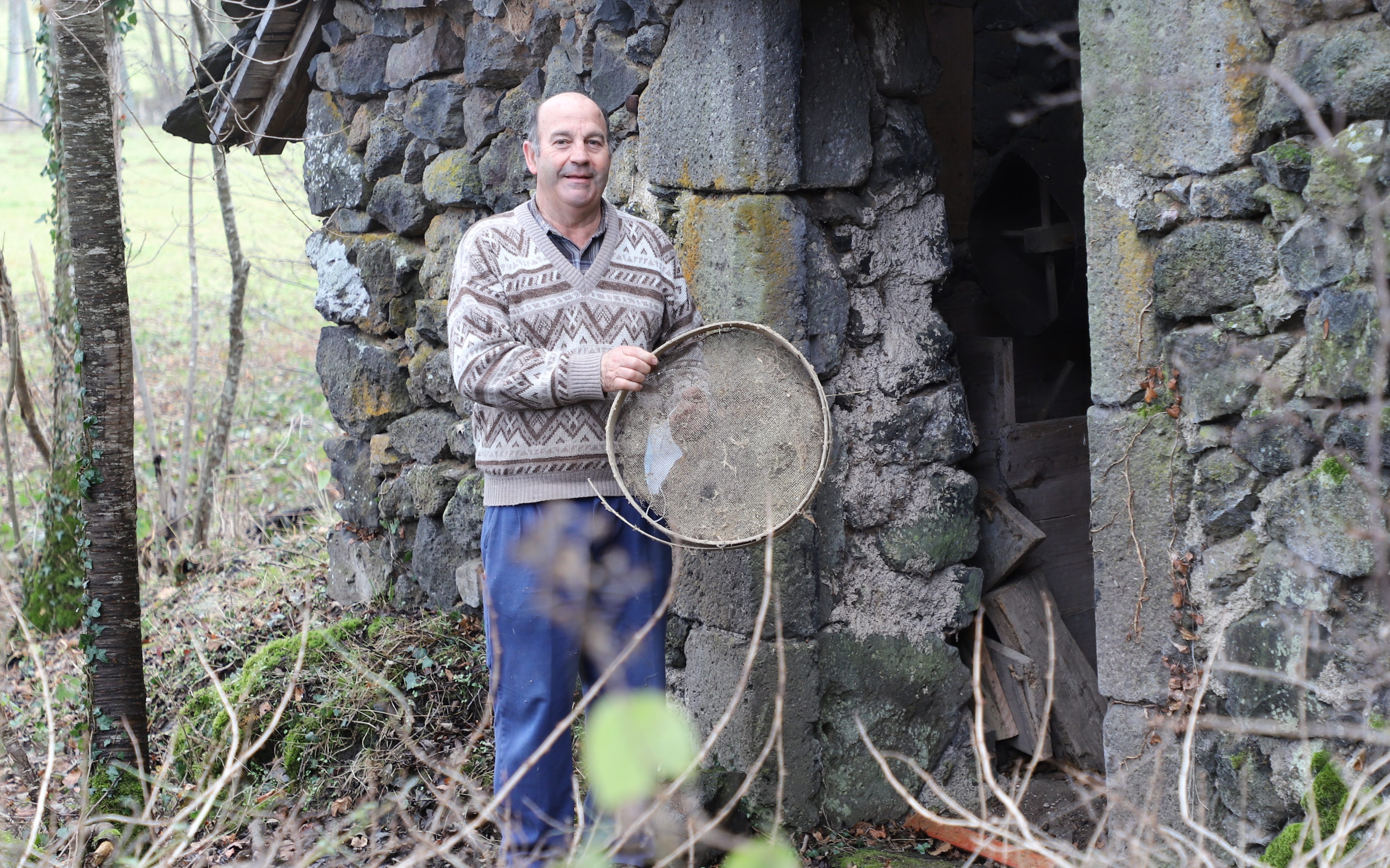« Je chasse et je pêche régulièrement. Quand je me rends à la rivière, chaque mois, je passe près du moulin à eau. C’est une bâtisse en chaux, costaud, qui date du Moyen-Âge peut-être. Au début du siècle dernier, chaque village autour de Saint-Nectaire avait son four banal, et chacun y faisait son pain. Dans les années 40, sous l’Occupation, le moulin était en ruine, abandonné, et les gens du village ne pouvaient plus faire leur pain. Dix-sept familles du village, dont la mienne, ont alors décidé de se cotiser pour le rebâtir. Pouvoir moudre son blé, récolter sa propre farine et faire son pain était un joli projet en cette période de restriction. Chacun apporta du temps, des matériaux et de l’argent ; mais un boulanger eu vent de l’initiative et les dénonça aux autorités. Le moulin fut mis sous scellés. Heureusement, un villageois ingénieux trouva un moyen de le faire fonctionner sans détruire les scellés. Ainsi, durant toute l’Occupation, les villageois firent tourner le moulin en secret, deux fois par semaine, la nuit. Aujourd’hui, le moulin appartient toujours à 15 familles du village – les descendantes de celles de 1940. J’en fais partie. Depuis la destruction du four le moulin ne fonctionne plus, alors j’essaie de l’entretenir moi-même. Je suis menuisier de métier, et je fais tout mon possible pour entretenir la bâtisse, avec un copain maçon. La toiture est faite de pierres qui s’effritent ; j’aimerais la refaire. Pour ça, j’ai besoin de l’accord de toutes les familles ; mais certaines, des étrangers au village dont c’est la maison secondaire, ne veulent pas en entendre parler. Ça serait chouette pourtant : à 4 ou 5 villageois, pendant quelques jours, avec des casse-croûtes, le job serait fait facilement. C’est une histoire de moulin, et c’est une histoire de bien-être entre personnes de connaissance ! »