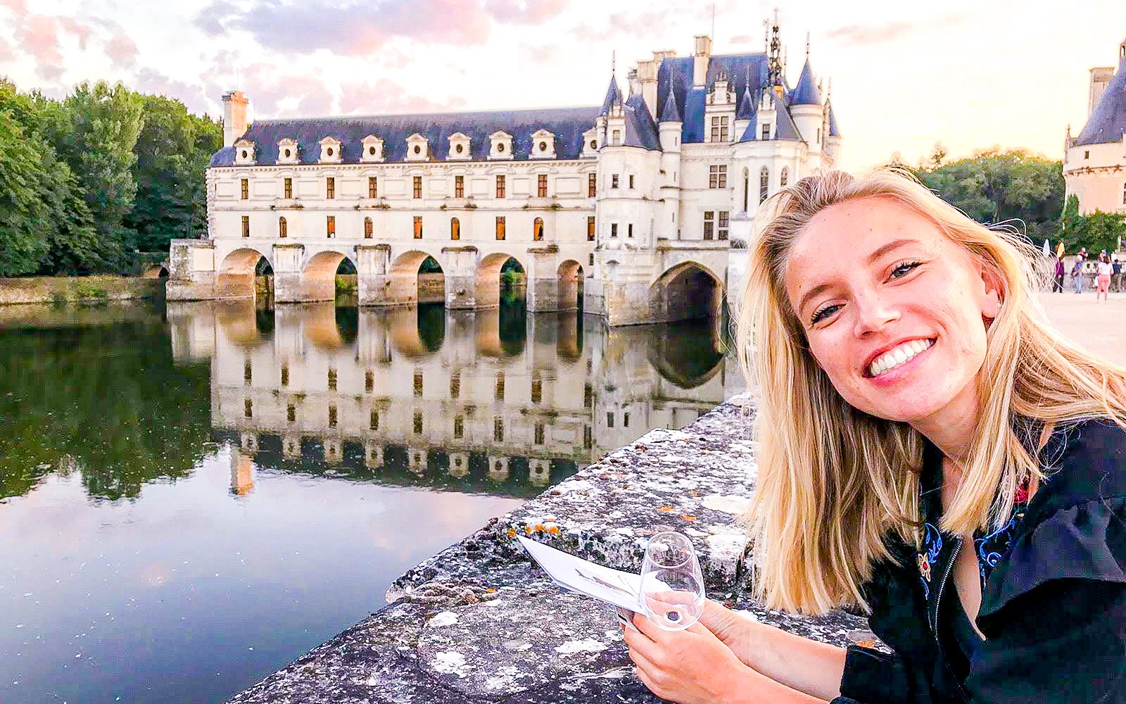 « Quand je suis arrivée dans la région, c’est le premier château que j’ai visité. J’ai eu un coup de cœur immédiat pour cette belle architecture, avec ce pont de pierre qui enjambe la rivière, et cette entrée imposante et travaillée, aux motifs architecturaux typique de la Renaissance. Il y a aussi un élément atypique avec la tour des Marques, le dernier vestige du château-fort primitif ; dans la perspective, elle se superpose aux ajouts de la Renaissance, et je trouve fascinante cette confrontation entre deux époques. J’aime aussi que le lieu ait une histoire si forte, qui ne resta pas figée à l’époque de la Renaissance : on le sait peu, mais le château marquait durant la guerre la ligne de démarcation entre la France occupée et la France libre. Il devint ainsi un lieu de passage-clé pour les résistants. Surtout, c’est le seul château de la Loire réputé pour avoir des histoires de femmes fortes. On le surnomme d’ailleurs ‘le château des dames’ ! L’épouse de son bâtisseur, Catherine Briçonnet, participa grandement à sa conception et à sa construction, et je trouve ça fort qu’une femme, à la Renaissance, prenne un tel rôle. Il y a aussi dans le château une salle impressionnante du fait qu’elle soit entièrement peinte en noir ; car après l’assassinat de son mari, la reine Louise de Lorraine décida d’inscrire le deuil dans ses tenues mais aussi dans l’espace qu’elle occupait. Une autre figure féminine du château est Louise Dupin, qui au 18ème siècle joua un rôle important pour sa conservation. Enfin, le château fut marqué par la rivalité entre Diane de Poitiers et Catherine de Médicis, qui l’occupèrent successivement et se battirent pour sa propriété. Catherine gagna ; elle créa un jardin face à celui de Diane : aujourd’hui, lorsqu’on se tient sur l’un des balcons du château, les deux parterres sont strictement opposés par la perspective, et il semble alors que la reine et la favorite s’affrontent encore ! »