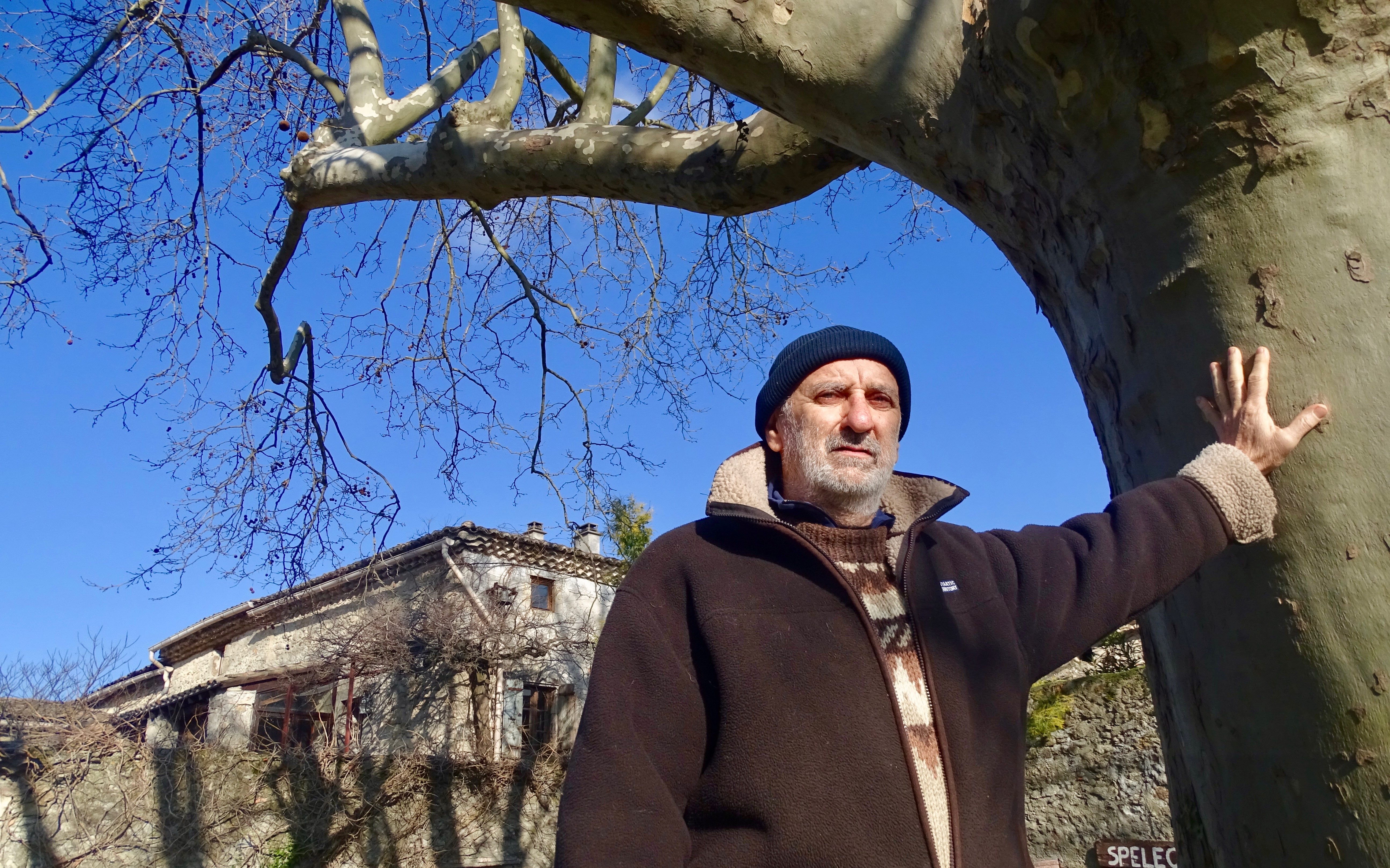 « Nous avons tous les deux passé une partie de notre vie à faire le tour du monde. ‘Heureux qui comme Ulysse a fait un beau voyage’… Un jour, je me suis senti rappelé par l’Ardèche. J’ai pensé que c’était le meilleur endroit pour continuer ma vie ! Après avoir vécu à différents endroits autour de mon village d’origine, j’ai forgé dans ma tête l’endroit idéal qu’il me fallait trouver. J’avais l’image une vieille maison avec un platane dans la cour. Lorsque j’ai rencontrée Marita, j’ai aussi rencontré une maison et un platane : les trois, ensemble, ont fait que je me suis profondément attaché au lieu… En rentrant de voyage quelques années plutôt, elle avait entrepris de restaurer la maison dont elle avait hérité, avec l’aide de ses filles. De mon côté, je n’avais pas d’enfant, et j’ai trouvé dans les siens l’énergie de la jeunesse, et un sens nouveau à ma vie. Alors que j’avais toujours écarté toute contrainte supplémentaire, je m’en suis trouvé une énorme – et j’ai embarqué dans cette histoire. Petit à petit, nous nous sommes piqués au jeu de la restauration. Nous voulions faire du Mas un lieu dans lequel on se sentait bien : un gîte équestre d’abord, puis un gîte d’étape, puis un lieu de stages. Nous avons consacré beaucoup de temps et d’énergie à faire tenir les édifices debout, remonter les pierres et consolider les murs, restaurer le lieu et le rendre habitable. Nous refaisions les toits au rythme d’un par an. On nous a souvent pris pour des fous, notamment lorsque nous avons décidé de dégager la partie en ruine des arbres, des ronces et des amoncellements de pierre. En est sorti un petit théâtre, niché dans la verdure, avec sa scène de spectacle. C’était de la pure folie ; et pour nous, l’œuvre d’une vie. En 4 secondes, tout a disparu. »
