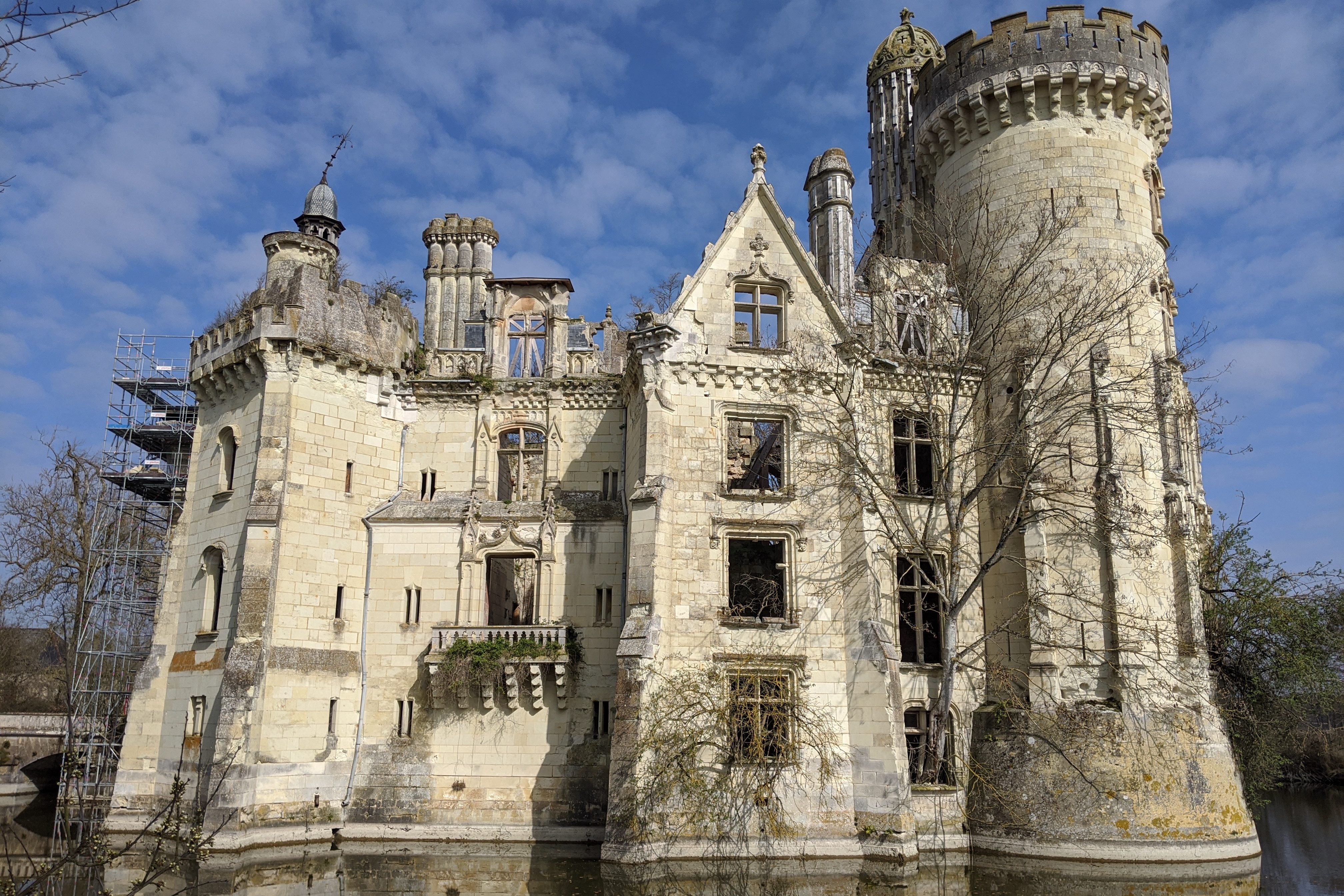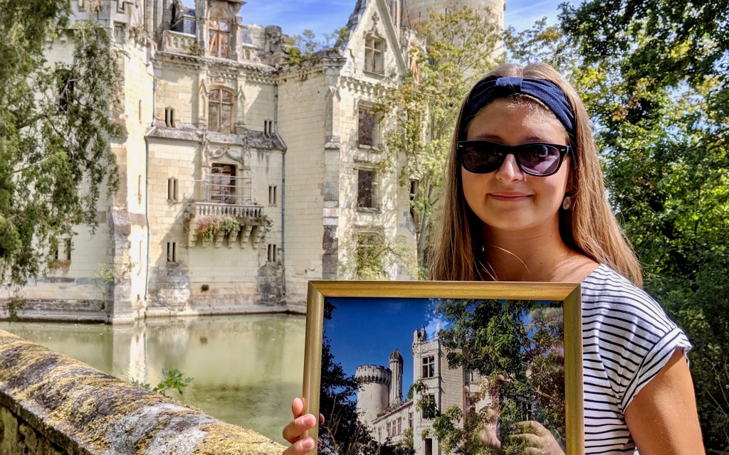 « De règle générale, tous les châteaux me plaisent ; mais, celui-ci fut un coup de cœur. D’abord bâti au 13ème siècle, il fut ruiné et pillé à la Révolution française, et rebâti au 19ème siècle dans un style néo-gothique. En 1932, un incendie le détruisit à nouveau, n’en laissant que les murs. J’habite dans la région, et j’entendais alors parler de cette ruine à l’abandon comme d’un spot d’explorations urbaines. L’endroit me rendait curieuse, et je m’y étais rendue, dans l’espoir de l’apercevoir, mais sans pouvoir trop m’en approcher. Il y a quelques années, le château fut racheté collectivement et j’ai saisi l’occasion. J’en suis ainsi devenue copropriétaire ! Plusieurs fois par an, le week-end, je m’y rends pour donner un coup de main, participer aux travaux et à l’entretien. Déblayer, ramasser les feuilles, couper les branches, construire des chalets pour les bénévoles… On y rencontre des passionnés. Il y a ce couple qui vivait en région parisienne ; tombés amoureux du château, ils ont tout quitté pour déménager près d’ici ! Cela me surprend toujours d’y rencontrer des gens venus de loin, d’Auvergne, du Sud, poussés jusqu’ici par amour du patrimoine. Notre but n’est pas de rebâtir le château, mais de préserver l’écosystème qui s’y est développé. Car c’est un lieu unique : s’il n’a plus ni pièces ni toit, les arbres ont poussé entre les murs de pierre, et la végétation s’est complètement intégrée au château. Quand on se tient dans le château, il suffit de lever les yeux pour voir le ciel, et les branches des arbres s’échappent par les fenêtres. Quand on y travaille, les promeneurs s’arrêtent toujours pour nous observer et admirer l’endroit. Grâce à cet écosystème, chaque saison nous promet un château différent : à l’été, une végétation luxuriante l’envahit jusqu’à déborder par les fenêtres, tandis qu’elle se rétracte en hiver, nous permettant d’apprécier les détails de l’architecture. Enfin, l’automne habille le château de somptueuses couleurs. Je trouve cet endroit magnifique, et complètement unique. »