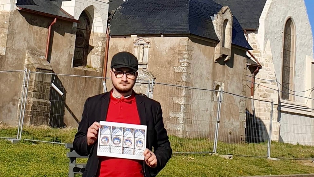 « Récemment, j’ai quitté ma terre bourguignonne d’origine pour la Vendée. J’avais toujours vécu en Bourgogne, tandis que la Vendée était la région de mon arrière-grand-mère, une région que je découvrais les étés. Peu après mon arrivée, j’ai découvert cette église, par hasard. Son aspect extérieur m’a beaucoup plu, avec son architecture qui mêle les styles roman et gothique, et son clocher ouvert, par des arches, aux quatre vents. J’ai trouvé que ça lui donnait un charme, plus esthétique que les églises brutes. En y entrant, j’ai eu un coup de cœur : sur les vitraux contemporains, on peut observer plusieurs églises abbassiales, et j’ai été surpris d’en reconnaître une que je connaissais déjà – l’abbaye de Tournus, en Bourgogne, justement ! J’ai instantanément aimé ce lien entre ma région natale et ma nouvelle vie vendéenne. La crypte de l’église accueille le cénotaphe de Saint-Philibert de Tournus, qui fut enterré ici. Si elle se mêle à ma région natale, l’histoire du saint s’ancre aussi dans l’histoire des Vikings : ses reliques furent transportées en Bourgogne pour être protégées des incursions vikings que l’île de Noirmoutier subissait au Moyen-Âge ! Je trouve cela incroyable, de savoir que l’île a été attaquée par les Vikings, qui l’utilisaient comme point d’appui pour envahir la côte ouest et s’implanter en terre franque. C’est une histoire de l’île qu’on connaît peu et qu’on ne s’imagine pas, car elle laisse que très peu de traces aujourd’hui ! C’est intéressant de se dire qu’à cause de cette histoire militaire les reliques ont fui de la Vendée vers la Bourgogne et que si j’ai suivi, plus de mille ans après, le chemin inverse, j’entends toujours parler d’elles. »