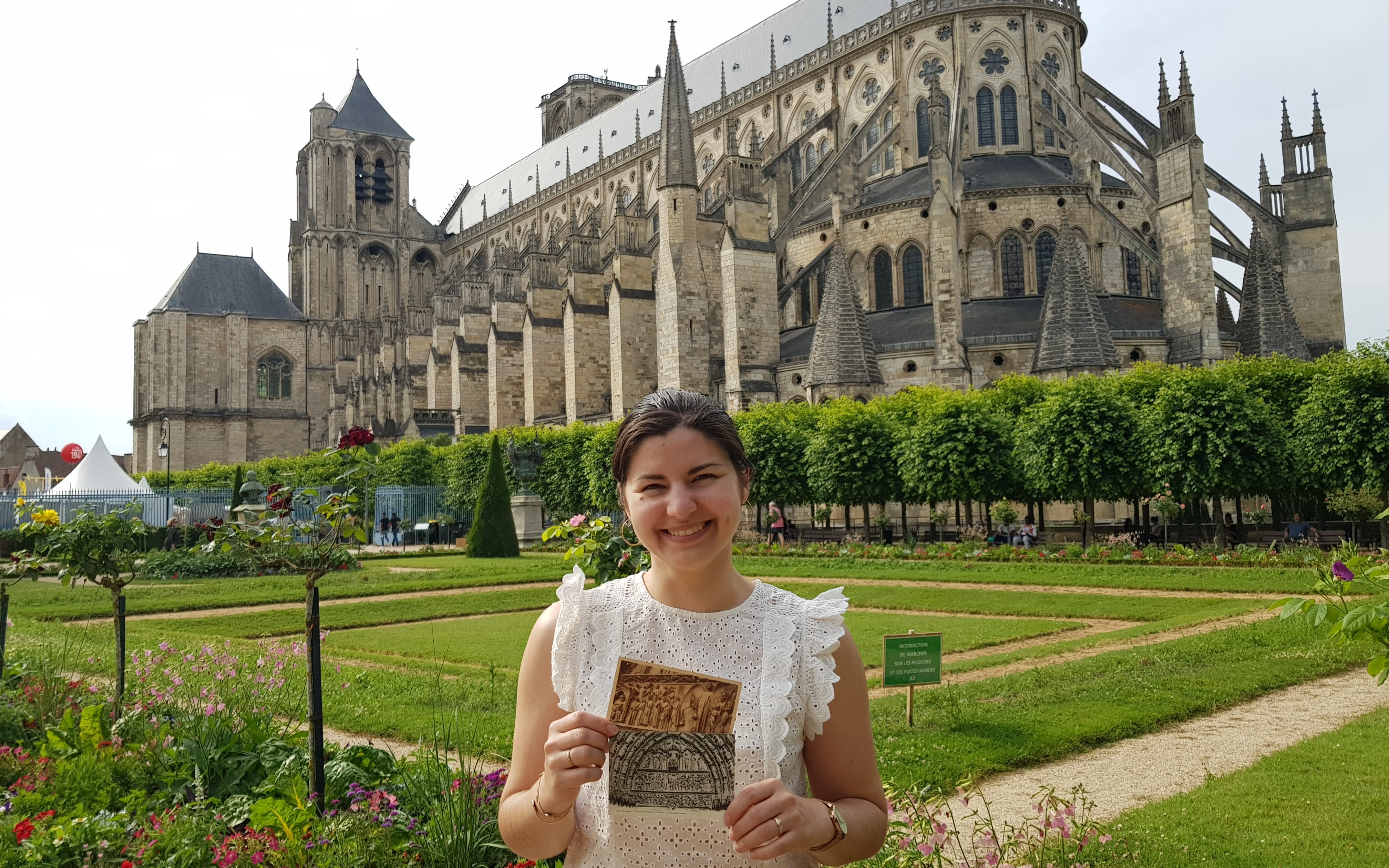 « J’aime cette cathédrale pour son architecture qui embrasse deux époques différentes, mi-gothique mi-romane. Sa silhouette est asymétrique : ses deux tours sont inégales, l’une n’ayant jamais reçu la cloche qui lui était destinée et ayant été renforcée par un contrefort. Cela me fascine, que des hommes soient parvenus à élever, il y a si longtemps, cette cathédrale à l’architecture captivante, et qu’elle se dresse toujours, aujourd’hui, devant moi. Lorsqu’on se tient sur le parvis, la cathédrale impressionne par sa stature ; l’étroitesse de l’espace empêchant tout recul, elle échappe aux tentatives de la capter par un appareil photo. Peut-être que l’absence de recul est voulue, car elle renforce son impression d’immensité. J’aime cette proportion que la cathédrale prend. Même à l’extérieur de la ville, autour de Bourges, on l’aperçoit de loin. Lorsqu’on est enfant, on aime rarement visiter les vieux monuments – mais la cathédrale était une exception. Toujours visible, elle était pour moi comme un signal, un point de repère, qui me disait que j’étais près de chez moi. La cathédrale est comme un phare, un lieu de rendez-vous, où les gens se rencontrent. Je m’assieds parfois devant, avec des amis, pour en admirer les cinq portails et les détails sculptés. Il y a, dans un coin, cette empreinte d’une paire de fesses laissée par un tailleur de pierre ; c’est rare, un édifice qu’on admire et qui nous fait rire ! Récemment, alors que je passais près de Bourges sans pouvoir y entrer, j’ai réalisé que j’étais en train de chercher à apercevoir, de loin, la silhouette de la cathédrale. À cause de la pandémie, je n’avais pu la voir depuis longtemps. J’ai compris que j’en avais besoin, besoin de la voir. »