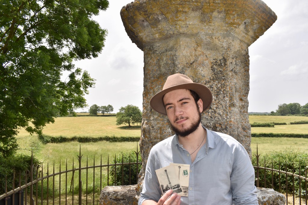 « Depuis le village, on ne l’aperçoit pas au premier coup d’œil. Il faut vraiment la connaître pour la dénicher, dissimulée au bout d’un chemin de terre accidenté. Je suis tombé sur cette colonne romaine par hasard, il y a quelques années, alors que j’explorais les environs avec ma compagne en quête de curiosités. L’atmosphère était romantique ; dans un paisible paysage d’été, quelques chapiteaux reposaient au sol dans un écrin de verdure. J’avais l’impression d’être dans les années 1830, de découvrir la passion de la ruine ! J’ai été charmé par le lieu, charmé par la découverte – une colonne, romaine en plus ! Malgré une passion plutôt axée sur la Bourgogne médiévale, je suis tombé sous le charme de ce morceau de l’histoire antique du territoire. Bâtie au IIe ou IIIe siècle, la colonne bordait peut-être une route menant à Augustodunum, aujourd’hui Autun. Il est en vérité difficile de faire la lumière sur son contexte de création exact. À travers son histoire millénaire, la silhouette du monument a servi de repère aux habitants locaux, tout comme les calvaires pouvaient l’être. C’est un lieu que j’aime, où je me rends souvent. Je prends la voiture depuis Beaune pour y venir, je m’assieds près de la colonne et j’y reste quelques temps. À force de l’observer, je la connais sous tous les angles. Je lis parfois, pas toujours – c’est pour moi surtout un lieu d’imagination, de contemplation du paysage et de l’Histoire. Paris me fatigue beaucoup, j’y suis toujours trop pressé ; alors la Bourgogne est un lieu de pause, la terre familiale. J’ai trouvé un jour une vieille carte postale sur laquelle un homme fait une sieste au pied de la colonne. Elle correspond bien à l’idée que j’ai du lieu, comme d’un écrin de repos. En y réfléchissant bien, je ne connais pas vraiment d’autre endroit qui me fait cet effet-là. »