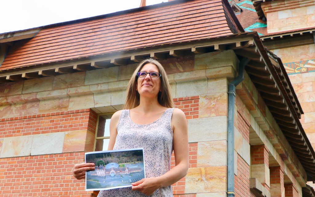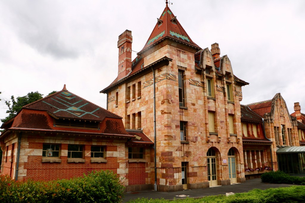 « J’aime l’effet de surprise. Sur la route, au virage, dans la descente, on tombe nez à nez avec la gare. Impressionnante, magnifique, elle jaillit du décor. La couleur attrape l’œil, avec cette pierre de grès rose et jaune. La taille surprend, cette immense gare nichée dans un écrin de verdure, trop vaste pour une petite ville. La toiture séduit, avec ses motifs géométriques Art Déco. On est intrigué par cette architecture atypique, faite de mosaïques, de marbrures, de cheminées, et de tuiles vernissées dont les couleurs changent selon la lumière. Tous ces éléments racontent que ça n’est pas là une gare traditionnelle. Elle fut ouverte en 1931, par la Compagnie du Paris-Orléans. Par l’architecture, la taille et le choix des matériaux, c’était un projet ambitieux. Elle marqua l’histoire de cette ville, la desserte ferroviaire étant essentielle au développement du thermalisme. Mais elle fut éphémère ; avec la fermeture de la ligne, la gare fut utilisée par les associations, accueillant un aquarium tropical, une salle de yoga, ou encore, un local de pétanque. Elle continuait ainsi de jouer un rôle, différemment, auprès de la ville et de ses habitants : c’est comme ça, aussi, qu’on fait vivre le patrimoine ! Aujourd’hui, la gare est devenue un espace socio-culturel. J’aime son extension moderne ; loin de la dénaturer, je trouve qu’elle lui permet de vivre, sous une forme nouvelle. Les habitants sont très attachés à la gare ; tous y ont des souvenirs. Les anciens se souviennent des trains, d’autres des associations, d’autres encore des débats liés à l’extension. Moi, j’y suis guide, et chaque visiteur, en réagissant différemment, en appréciant des détails uniques, me fait regarder la gare sous un angle nouveau. Certains y trouvent un attachement à leur région, tels les Bourguignons qui reconnaissent les tuiles vernissées. Je participe aussi à l’organisation d’expositions ; pour moi, les œuvres d’art projettent de nouveaux éclairages sur les espaces de la gare. C’est un lieu que je ne cesse de redécouvrir, chaque fois que je m’y rends. »