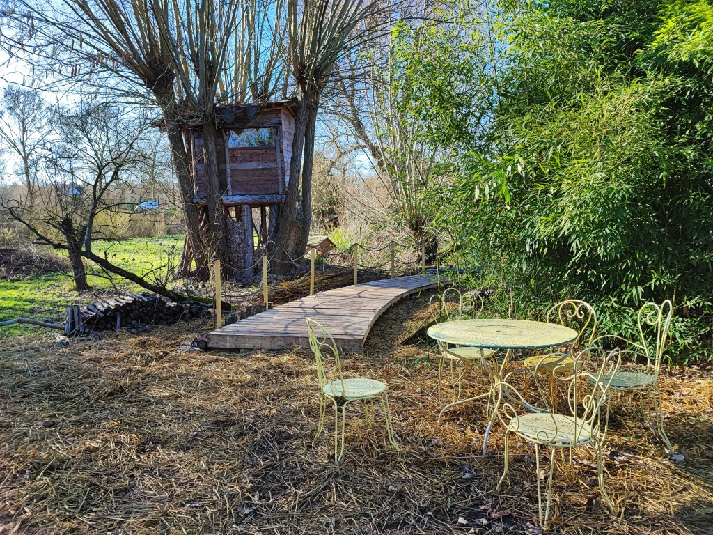 Le projet de ce jardin, c’est une synthèse. C’est un mélange de production, de pédagogie, d’art et de tourisme. Au départ, nous avons retiré 50 mètres cubes de déchets. Depuis, nos aménagements sont essentiellement réalisés en matériaux naturels. C’est une création collective : depuis le début de l’aventure, près de 2 000 personnes y ont participé. J’arrive de plus en plus à me poser. Mais c’est le fruit de travail et de sueur. Si c’est une terre propice à la culture, mélange d’alluvion (presque comme de l’argile) et de tourbe brune, elle nécessite de fumer le terrain, c’est-à-dire d’y apporter de l’engrais, du fumier.