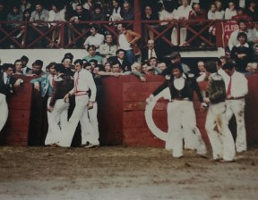 Aujourd’hui, les arènes sont devenues un monument incontournable dans le village. Il s’y est toujours déroulé de belles courses landaises, notamment avec le troupeau Labat, avec les écarteurs* Ramuncho et Ramuntchit. Des années 1960 jusqu’aux années 1980, les arènes ont accueilli des spectacles de variétés. Décorées avec des bambous, les loges servaient pour les artistes. Nous avions la chance d’avoir à Estang un peintre, Pierre Pradère, qui adaptait les décors scéniques à l’artiste venu chanter. C’est lui également qui a réalisé le blason des arènes : il représente un écarteur en train de faire un écart.