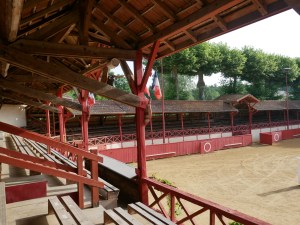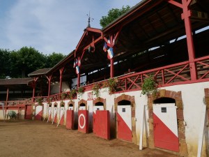 | *Loges : les “boxs” des vaches en attente de rentrer dans les arènes. Les loges des arènes d’Estang se situent en-dessous des gradins de la partie Ouest. |