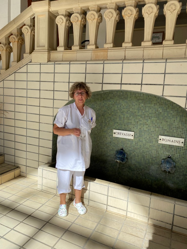 Puis on réalise que le temps passe vite. Un jour, un monsieur que j’avais soigné lorsqu’il était adolescent est revenu aux thermes, marié, et m’a présenté son enfant qui bénéficiait des soins à son tour. Ça m’a fait drôle ! Aujourd’hui, je souhaite transmettre mes connaissances sur la médecine thermale. Je crois avoir atteint mon objectif, je connais ces thermes, j’ai exploré le terrain dans sa totalité – alors maintenant, je souhaite former les jeunes soignants, leur transmettre ce savoir-faire. Moi qui aime aller de l’avant, je pense qu’on peut toujours avancer et avoir des idées nouvelles – et c’est ce que je tâcherai de faire ici. »