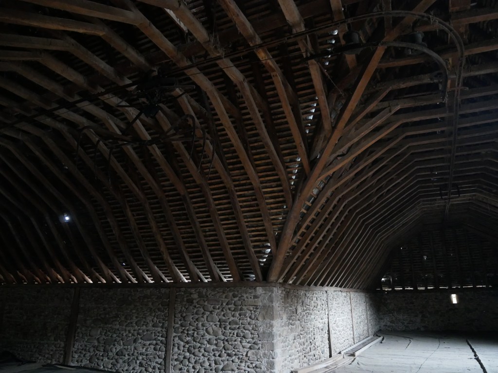 La ferme Borderouge représente parfaitement la construction type de tout le bâti du pays avec, pour particularité toutefois, sa cour centrale et sa galerie. Les murs sont en galets du gave*, les charpentes et les chevrons en poutres de chênes, et la couverture en ardoises. Enfant, j’étais souvent dans des cachettes de la ferme : le grenier ou le fenil. Je prenais l’échelle et un livre, et j’y lisais tranquille, jusqu’à entendre dans la cour « où es-tu passé ? ».