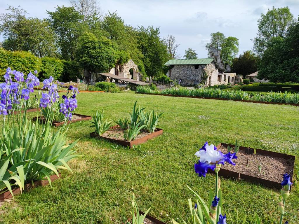 L’idée de départ, en 2003, c’était de développer le site par le biais de plusieurs projets comme le son et lumières ou la création de jardins avec une classe. La question était : comment créer un jardin d’inspiration médiévale ? Nous avons choisi de mettre en place un jardin ornemental, articulé autour de trois fleurs, particulièrement appréciées au Moyen-Âge : la rose, le lys et l’iris. Au début, il n’y avait que des iris blancs. Et puis, je me suis lancé, j’ai développé un parcours symbolique en plantant une quarantaine d’espèces différentes sur tout le site. »